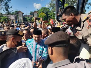 Hasil pantauan insanchannel.com tampak ribuan masyarakat Dompu tumpah ruah di lapangan Beringin dan halaman Pendopo Bupati Dompu untuk mengantar perjalanan jamaah calon haji Dompu. Lambaian tangan dan derai air mata serta kalimat talbiyah menyertai perjalanan jamaah haji Dompu. Ikut hadir mengantar, Wakil Bupati Dompu, H. Syahrul Parsan, ST, MT, Sekda Dompu berikut kepala-kepala OPD dan pejabat menyatu dengan masyarakat mengantar perjalanan haji Dompu.