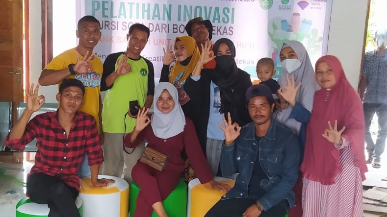 Mengubah sampah menjadi produk bernilai ekonomi ini dibimbing langsung Bank sampah Bintang Sejahtera Lombok sebagai mitra PT Sumbawa Timur Mining (STM) melakukan pendampingan bank sampah Huu. Pada Rabu (19/1) di aula kantor Desa Daha kecamatan Huu Kabupaten Dompu, NTB, Bank Sampah Bintang Sejahtera melakukan pendampingan kepada BSI Huu Raya bersama bank sampah unit se Kecamatan Huu melakukan pelatihan inovasi kursi sofa dari botol bekas. Delapan kursi sofa berhasil dibuat dan bisa langsung dimanfaatkan.