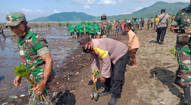 DOMPU, INSANCHANNEL.COM – Komandan Kodim 1614 Dompu, Letkol Inf. Ali Cahyono S.Kom memimpin kegiatan penghijauan penanaman mangrove di wilayah desa Soro Kecamatan Kempo. Puluhan anggota Kodim termasuk ibu-ibu Persit Kartika Chandra Kirana Cabang XXVIII Kodim Dompu, Polri dan masyarakat nelayan setempat ikut ambil bagian dalam kegiatan yang melibat sekitar 150 Orang ini.