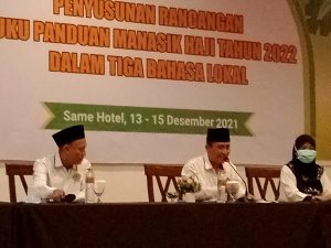 Sementara Ali Sahbana, SE, Panitia Pelaksana Penyusunan Rancangan Buku Panduan Manaik Haji tahun 2022 ini mengatakan, masalah yang sering muncul ke permukaan dalam pelaksanaan ibadah haji termasuk muncul ke permukaan tentang ketidapuasan dan para jamaah. “Maka Kemenag terus meningkatkan pelayanan termasuk melakukan penyusunan buku,” paparnya seraya menambahkan, tujuan dari penyusunan buku dalam tiga bahasa local ini dalam rangka untuk meningkatkan pemahaman jamaah secara mandiri. Sedangkan narasumbernya, Kakanwil Kemenag. NTB, Direktur Bina Haji, Ketua PWNU, Ketua NW NTB, dan KetuaMuhammadiyah NTB dengan kegiatan selama tiga hari dari tanggal 13 sd 15 Desember 2021. (nas)