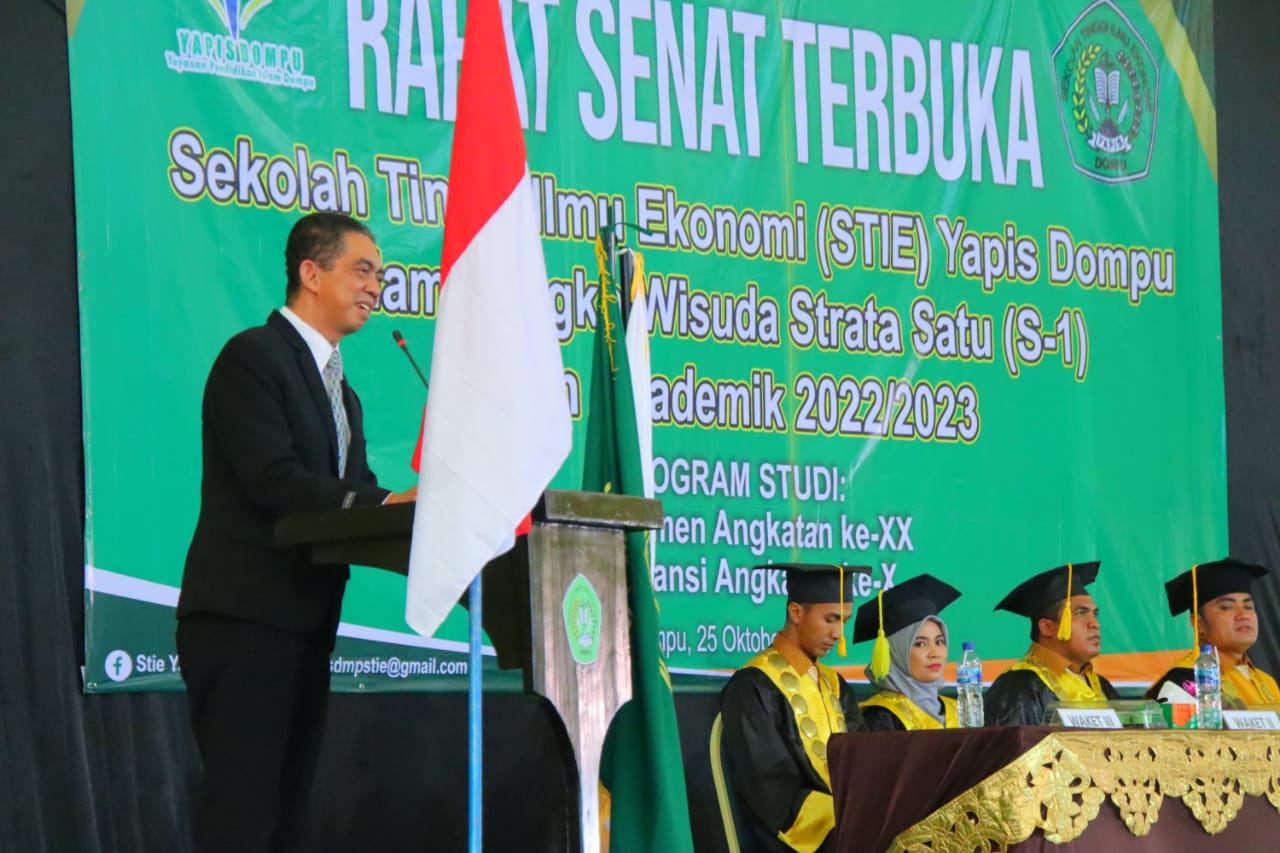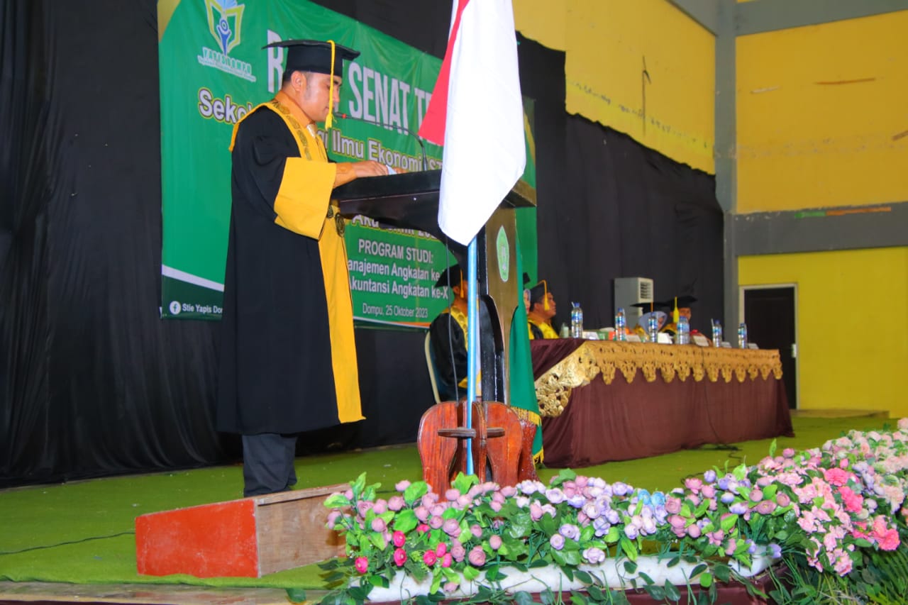 Dr Dodo Kurniawan, SE, ME, Plt Ketua STIE Yapis Dompu pada rapat senat terbuka mengungkapkan, wisuda ini sebagai wujud tanggungjawab kampus pada mahasiswa, masyarakat, pemerintah dan negara atas program studi yang diselenggarakan. Dalam rangka menyiapkan SDM unggul yang melimpah, STIE Yapis Dompu berkomitmen untuk ikut berkontribusi mencetak lulusan terbaik dan mampu beradaptasi dengan kemajuan zaman. “STIE sejak didirikan tahun 2000 berhasil mencetak ribuan sarjana dan turut berkontribusi bagi pembangunan bangsa dan daerah,” ungkapnya.