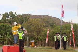 Upacara bendera dilangsungkan di area staging Desa Marada Kecamatan Huu Kabupaten Dompu, Rabu (17/8/2022) pagi. Pedro Wahyu A. N, Operational Analyst PT STM bertindak sebagai inspektur upacara dan Iwan dari koordinator Security yang menjadi komandan upacara. Pengibar benderanya dilaksanakan oleh 3 orang anggota Security PT STM, yaitu Wiro, Adhar, dan Aditiya.