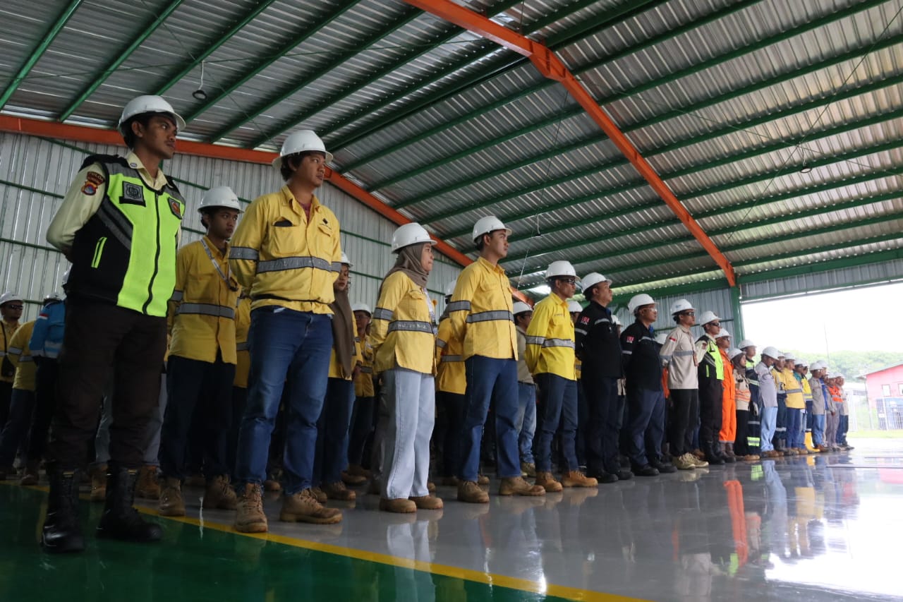 Pekerja PT STM Mengikuti apel pembukaan Bulan K3 Nasional tahun 2026 di area New Staging Site Hu’u Dompu, Senin (12/1/2026) pagi.