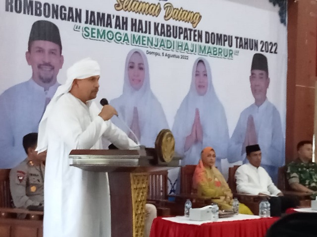 Sementara itu Wakil Bupati Dompu, H. Syahrul Parsan, ST., MT mewakili Pemda Kabupaten Dompu menyampaikan ucapan selamat datang kepada Bupati Dompu, H. Kader Jaelani bersama rombongan jamaah haji Kabupaten Dompu tahun 2022 yang telah tiba kembali di Dompu setelah melaksanakan ibadah haji di tanah suci.