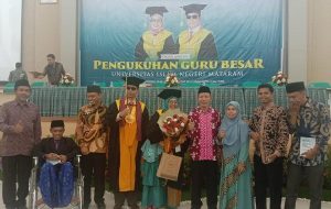 Duo Prof saat foto bersama dengan para dosen UIN Mataram usai Pengukuhan