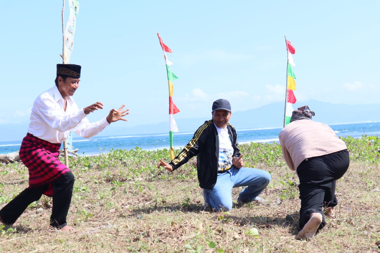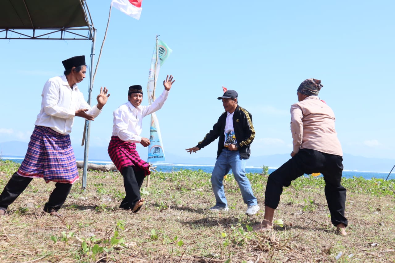 DOMPU, INSANCHANNEL.COM – Penampilan Junaidin dan Yahya dari Sanggar Ruhu Suma Hu’u melakukan atraksi gantao diiringi alunan music tradisional Dompu menantang Wakil Bupati Dompu, Syirajuddin, SH untuk tampil. Syirajuddin tampil memperagakan gantao dan menjatuhkan kedua pemain yang dihadirkan panitia pada pembukaan turnamen surfing Lakey Dompu pada Selasa (15/7/2025) pagi.